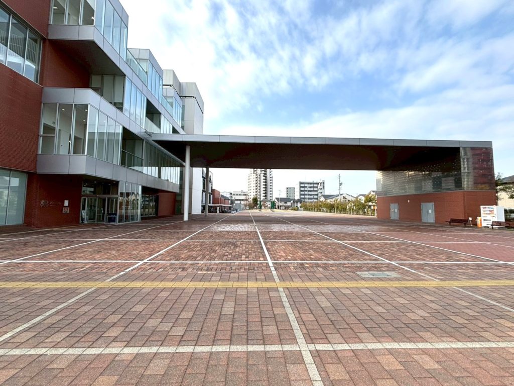 JR安城駅から徒歩5分にあるアンフォーレは、従来の公共施設のイメージを覆すおしゃべり・飲食OKな図書館(すごい)。人口規模別の自治体で図書貸出数全国1位を何度も獲得しており、市民に圧倒的に活用されています。建物横には、煉瓦の舗装が特徴の広大な屋外スペースがあり、市民の憩いの場になっています。
