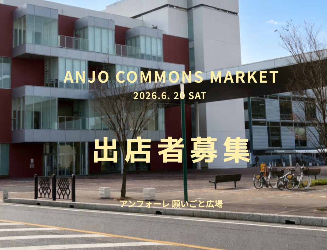 昨秋の「T.A.D.O MARKET」、今春の「OPEN COSMOS MARKET」に続き、安城市のアンフォーレにて「ANJO COMMONS MARKET」という新しいマーケットを、6月20日(土)に開催いたします。